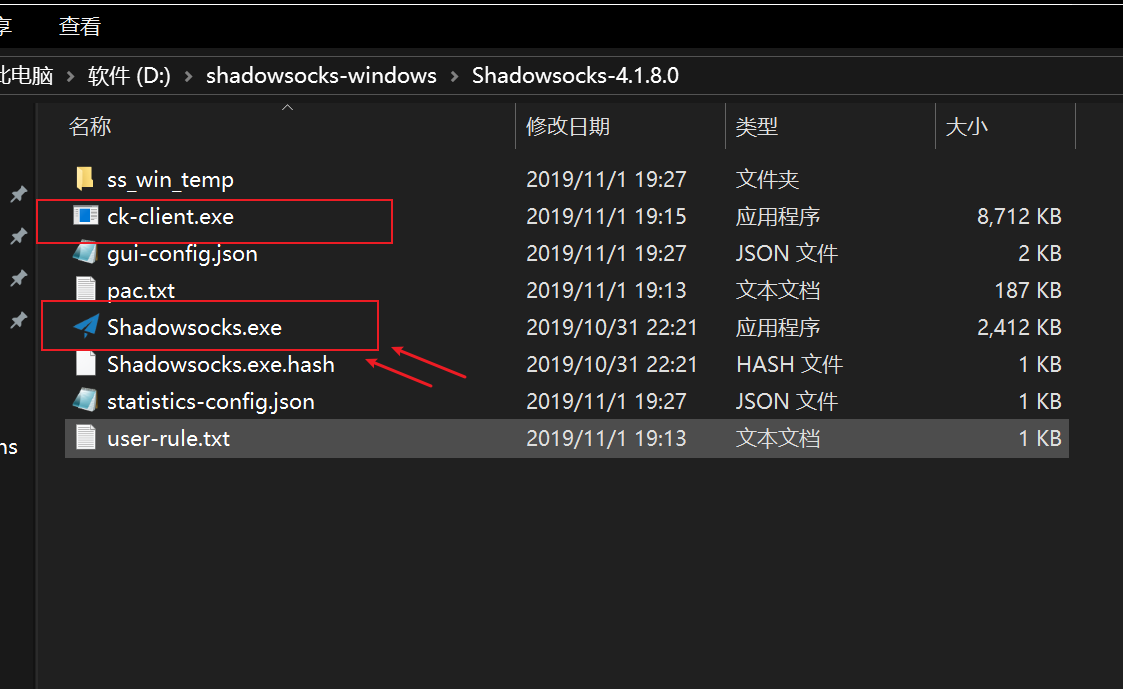 把ck-client-windows-amd64重命名为ck-client放到Shadowsocks.exe同目录,如图