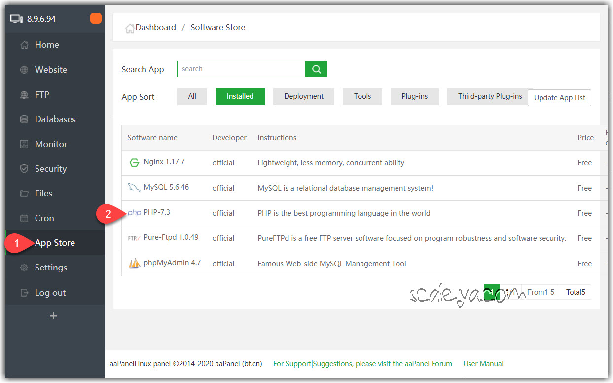 2.安装英文版本的宝塔界面,名字叫做aapanel,ssh客户端是mobaxterm,php版本改成7.3 安装App Stored的PHP 7.3 的redis 禁用putenv proc_open pcntl_alarm pcntl_signal
